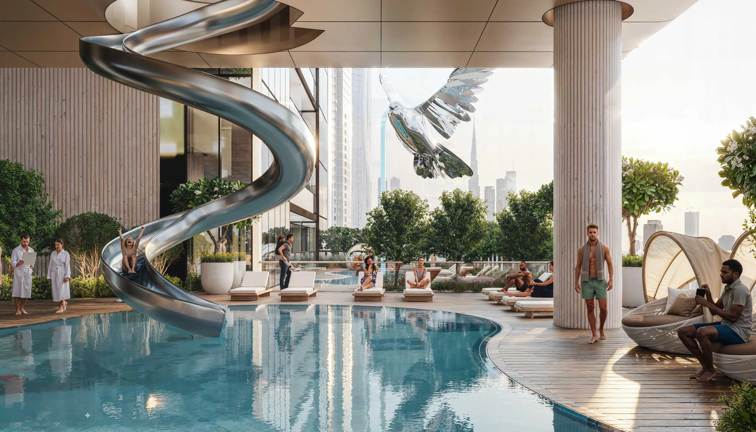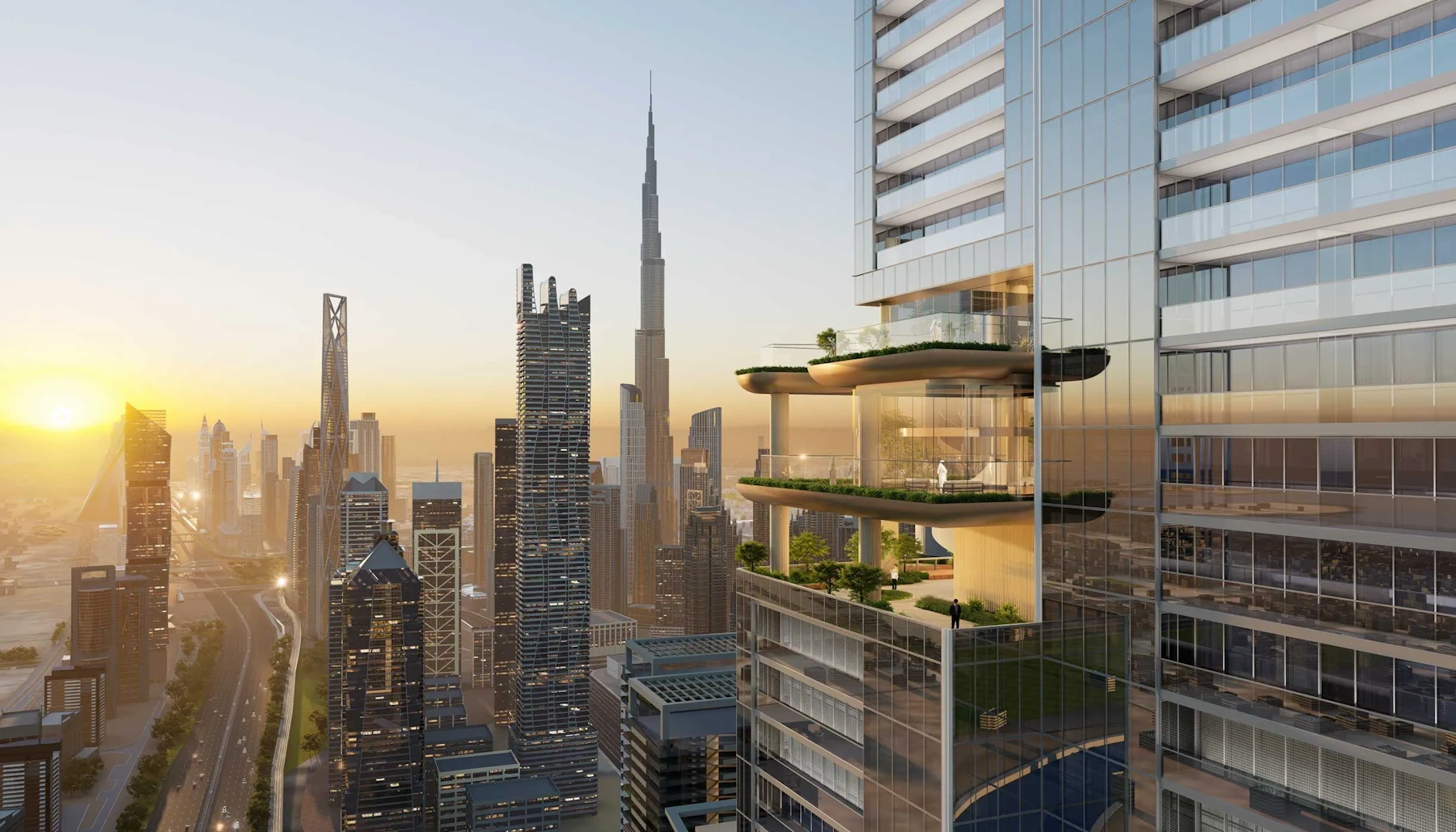 1–3BR residences and exclusive duplexes with sweeping city, canal, and Gulf views. Four six-story SkyParks offer infinity pools, wellness zones, and curated gardens. Prime SZR location with seamless metro access, high-rise living redefined for the extraordinary.